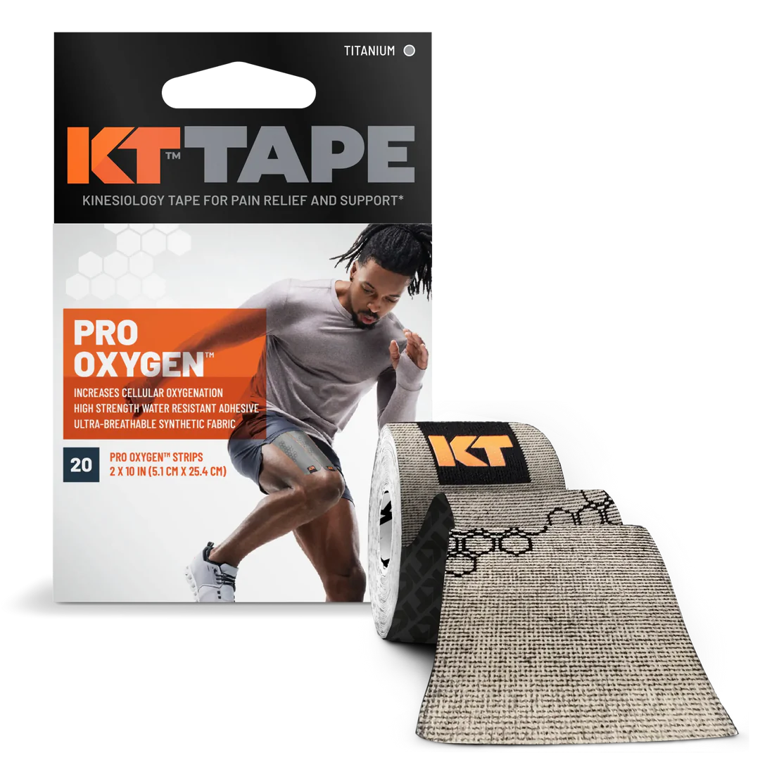 KT Tape® Pro Oxygen™ blev skabt med ydeevne i tankerne, til at fungere i de mest barske miljøer, lindre smerter, give støtte, hvor du har brug for det, og holde sig på plads gennem flere træningspas. Den er lavet med vores KT Tape Pro® 100% syntetiske kinesiologitape og konstrueret med højstyrke vandafvisende klæbemiddel til at holde længst muligt.